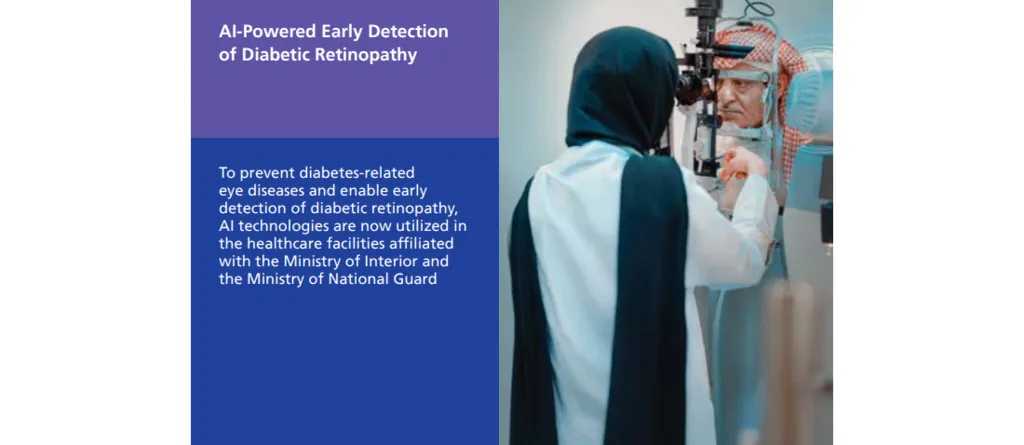Artificial intelligence played a growing role in early detection. In 2024, AI was deployed to screen for diabetic retinopathy across facilities run by the Ministry of Interior and the National Guard. This preventative technique helps diabetes patients avoid eyesight loss, one of the most prevalent problems.
